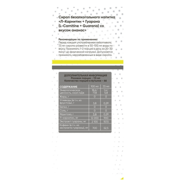 L-Carnitine Concentrate + Guarana, 500 мл, Pineapple / Ананас
