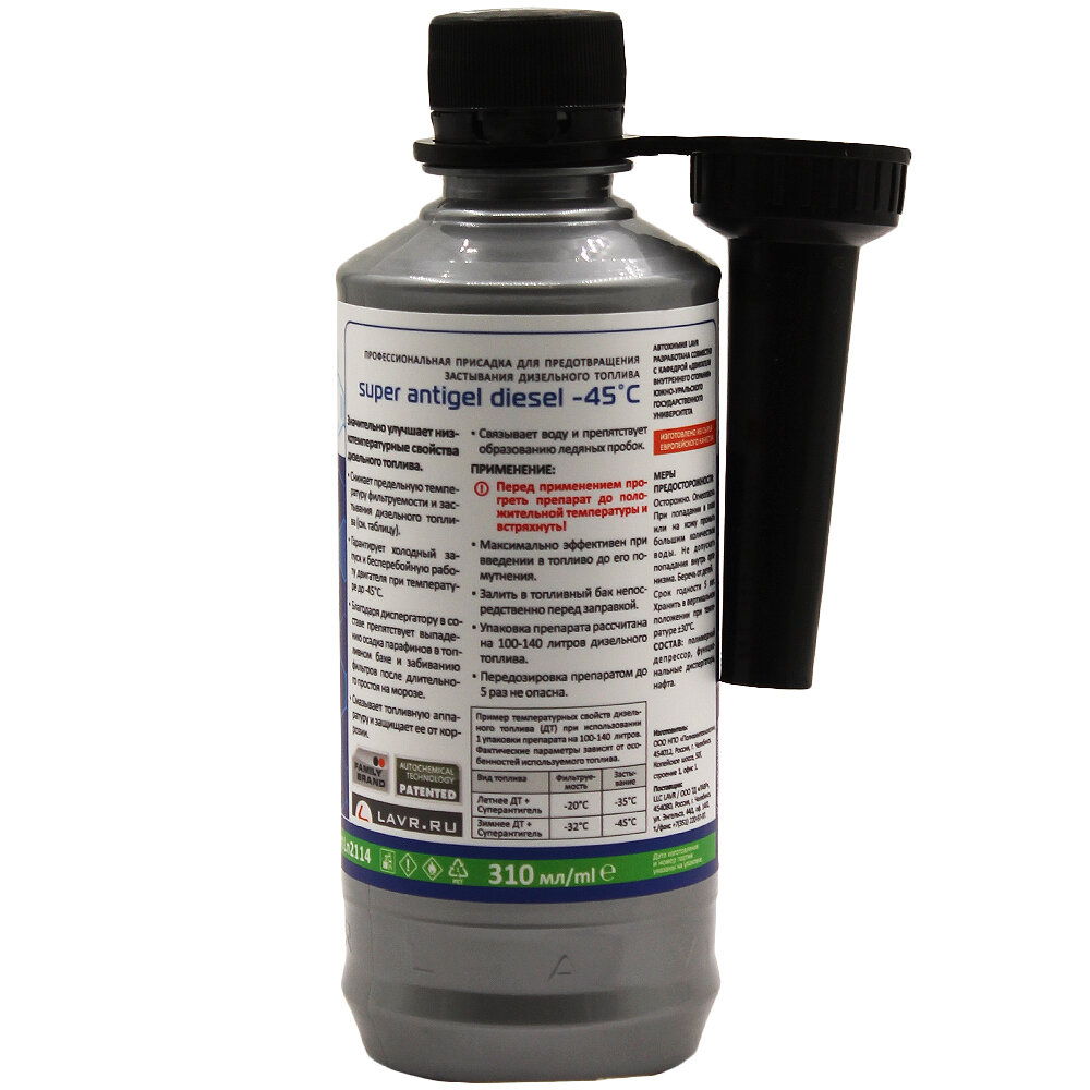 Суперантигель С Диспергатором 100-140 Л (1:400) С Насадкой Lavr Super Antigel Diesel -45°c 310мл Ln2114 LAVR арт. Ln2114