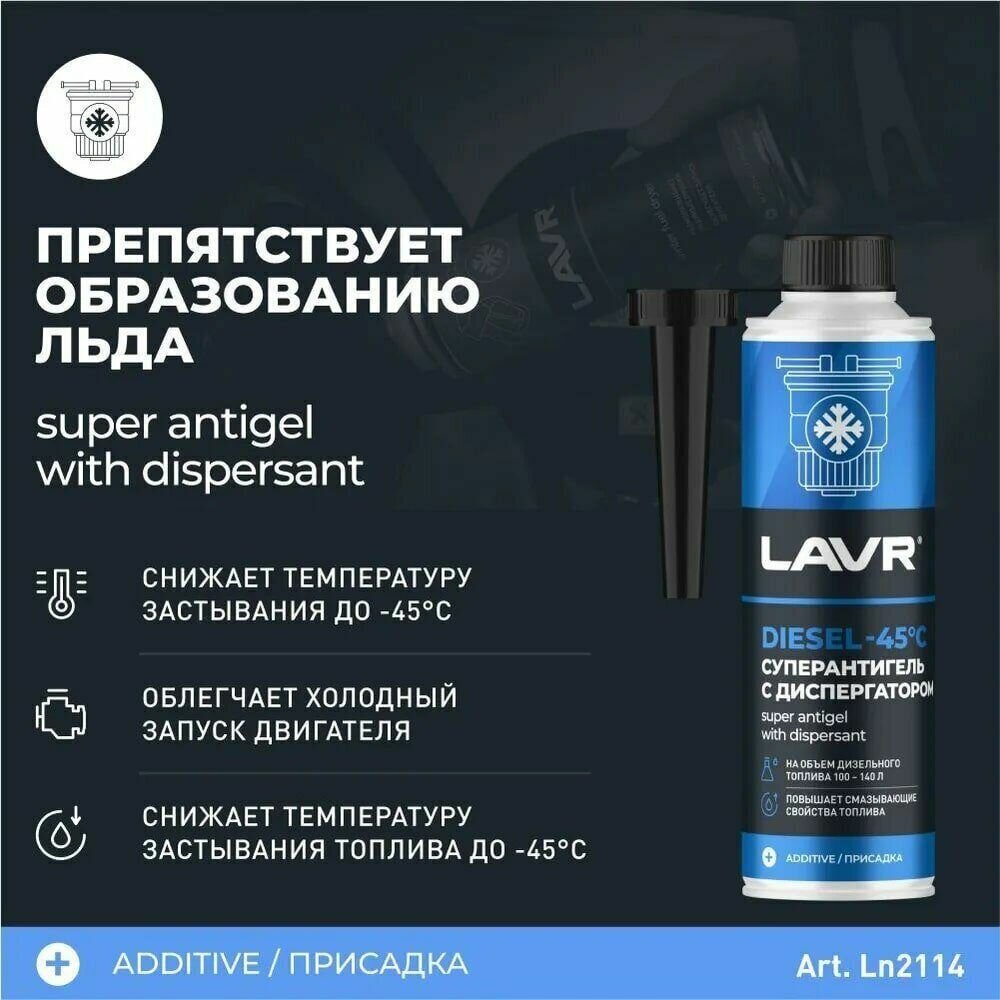 LAVR / ln2114 / Антигель (Суперантигель) с диспергатором присадка в дизельное топливо на 100-140 л (1:400) с насадкой LAVR Super Antigel Diesel -45°C for 100-140 litres 310мл