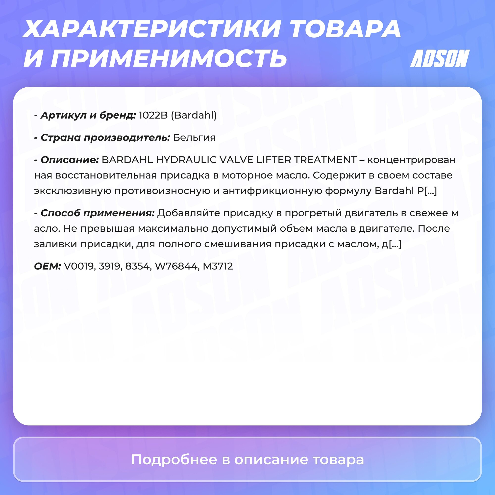 СохранитьBARDAHL 1022B HYDRAULIC VALVE LIFTERS 300 ML 6PZ BARDAHL приса интересное: