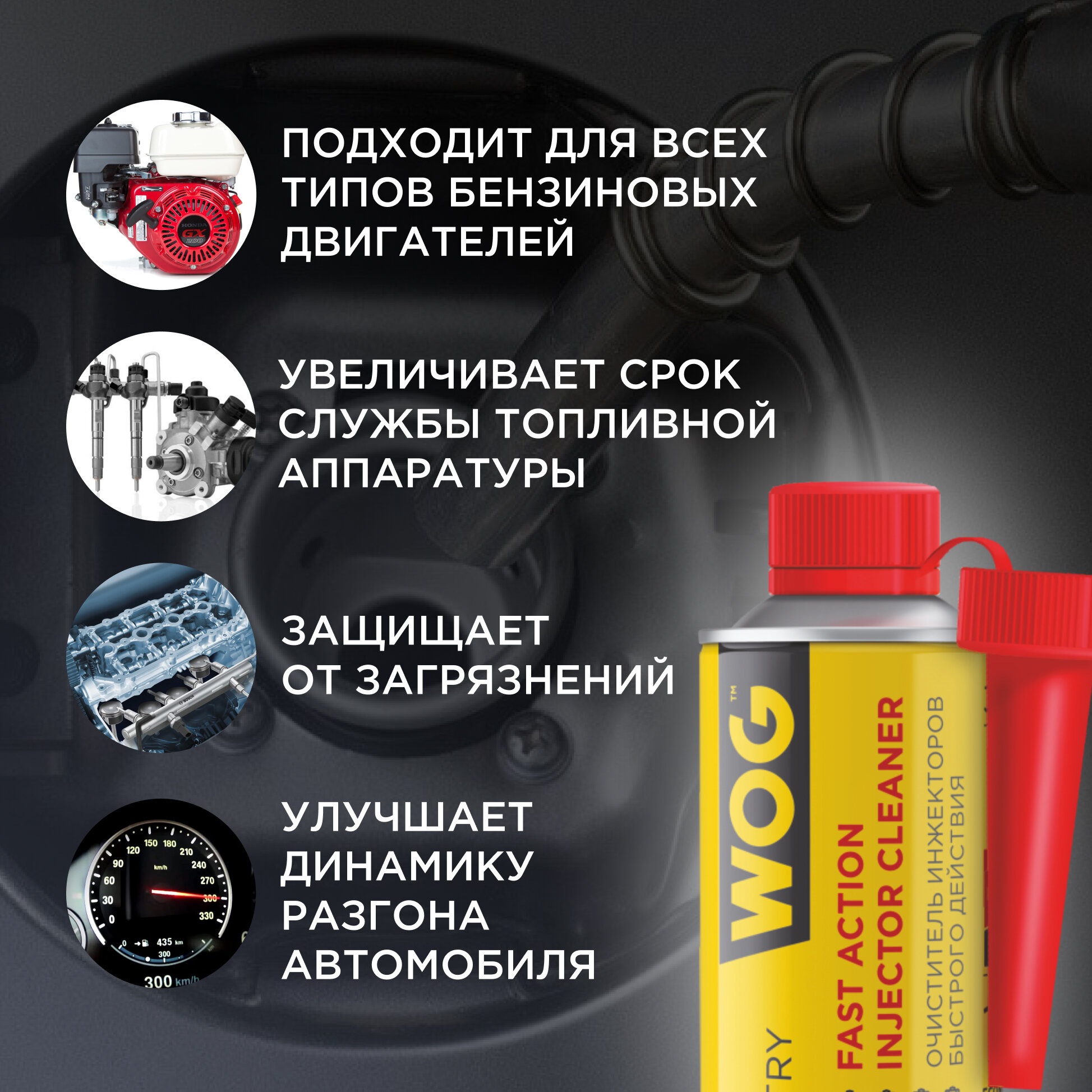 WGC0521 WOG Присадка в топливо (бензин) 335мл - очиститель инжекторов, присадка направленного действия в бензин (на 40-50 л топлива), с насадкой