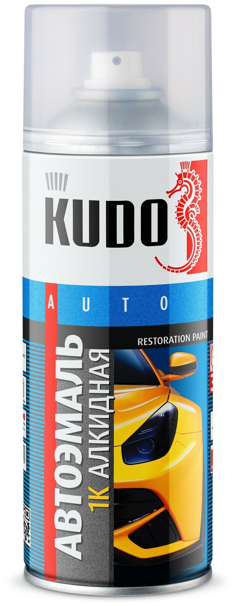 KUDO KU-4098 Краска алкидная 520мл - Белая Газель, ремонтная автоэмаль, аэрозоль