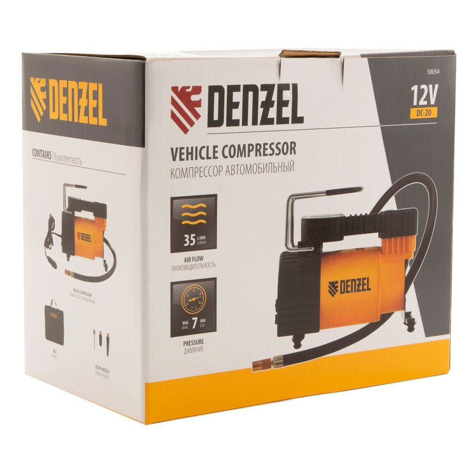 Компрессоры автомобильные (DENZEL Компрессор автомобильный DС-20, 12 В, 7 атм., 35 л/мин 58054)