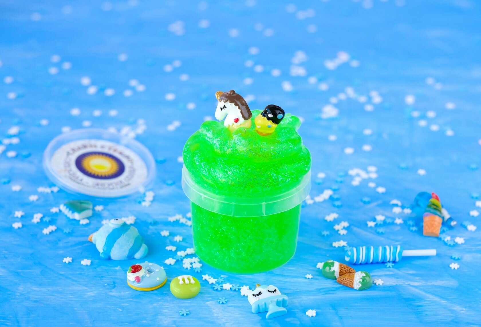 Слайм Стекло "Мощь океана" с ярко-синими блестками, 100 г (00-00001213)