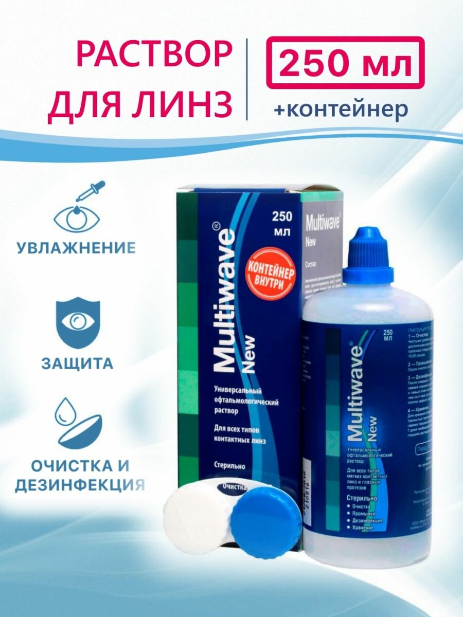 Раствор Multiwave New для ухода за контактными линзами с контейнером, 250 мл