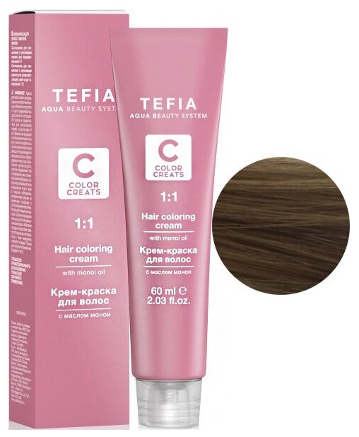 Крем-краска с маслом монои TEFIA Color Creats, 60 мл (7.81 блондин шоколад пепельный)