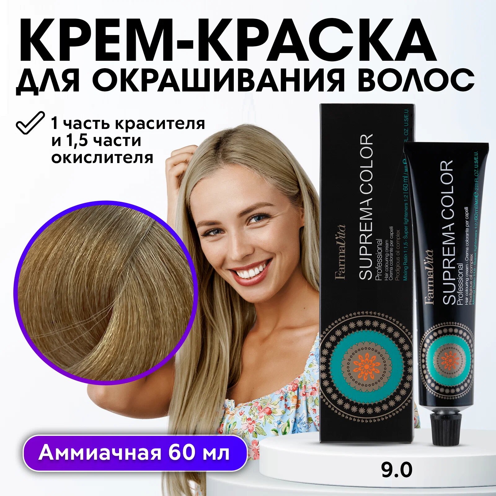 FARMAVITA Крем-краска для окрашивания волос оттенок 9.0 очень светлый блондин SUPREMA COLOR 60 мл, идентичен Life Color Plus