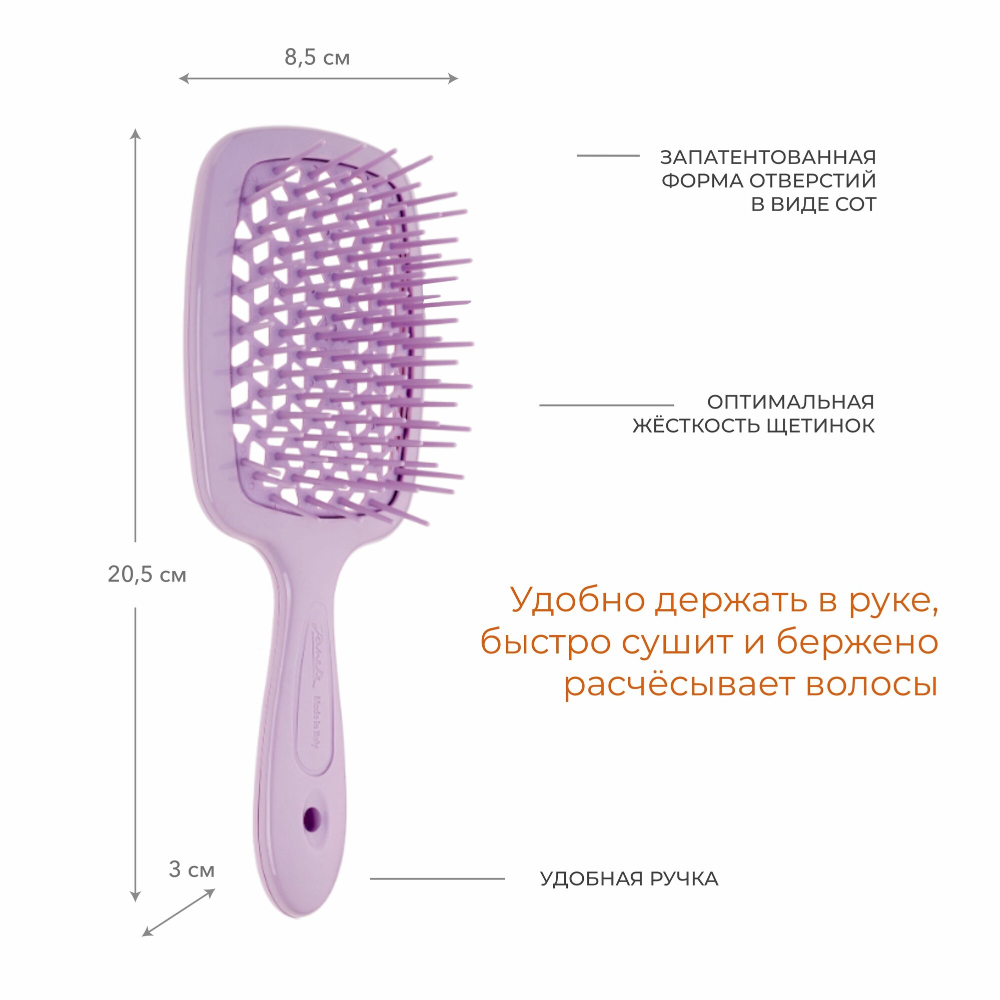 СохранитьJaneke SUPERBRUSH Щетка для волос, 86SP226LIL, светло-лиловый, 20,3x8,5x3,1 см интересное: