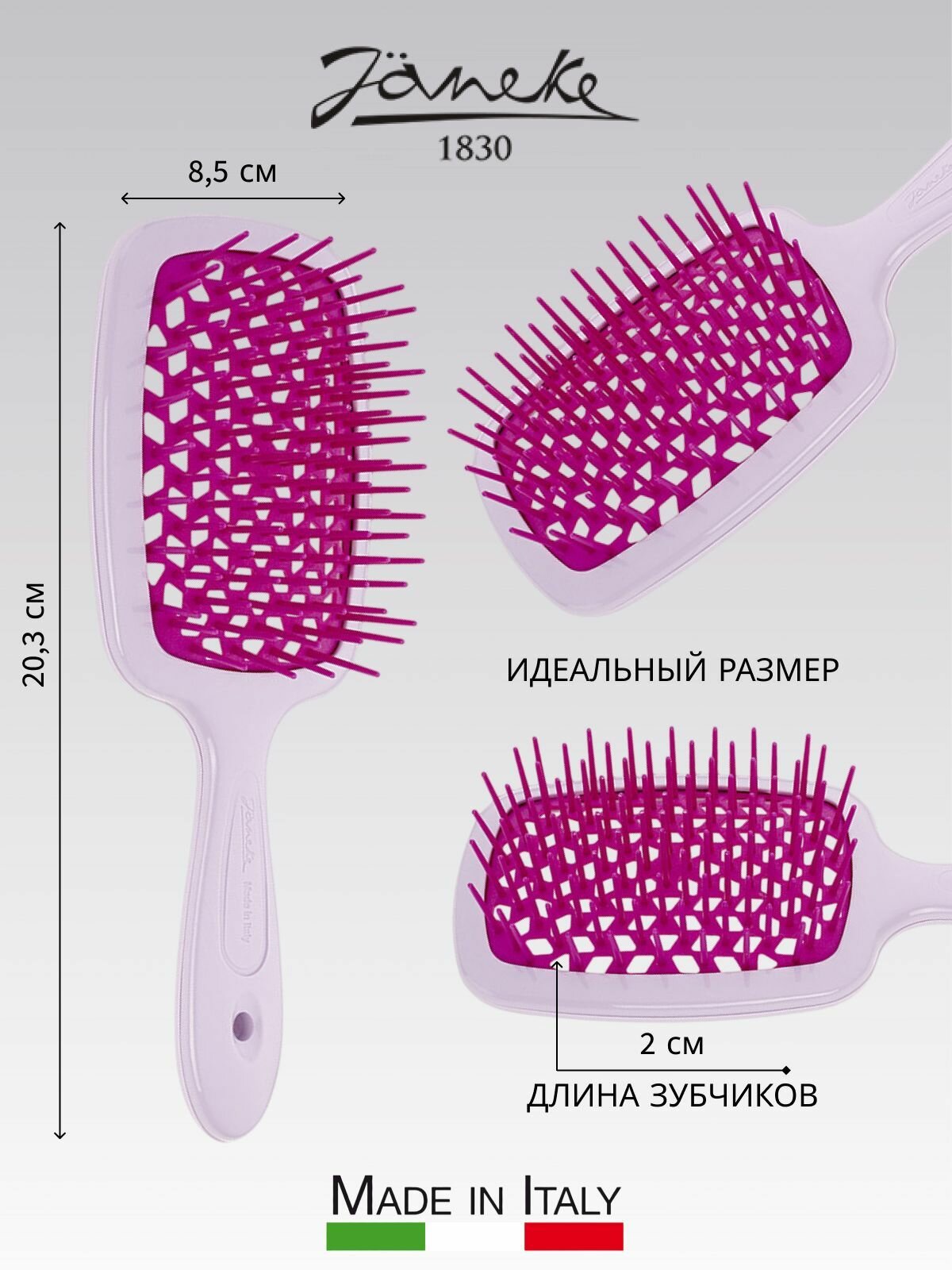Janeke SUPERBRUSH Щетка для волос, 86SP226LIF, светло-фиолетовый/фуксия, 20,3x8,5x3,1 см