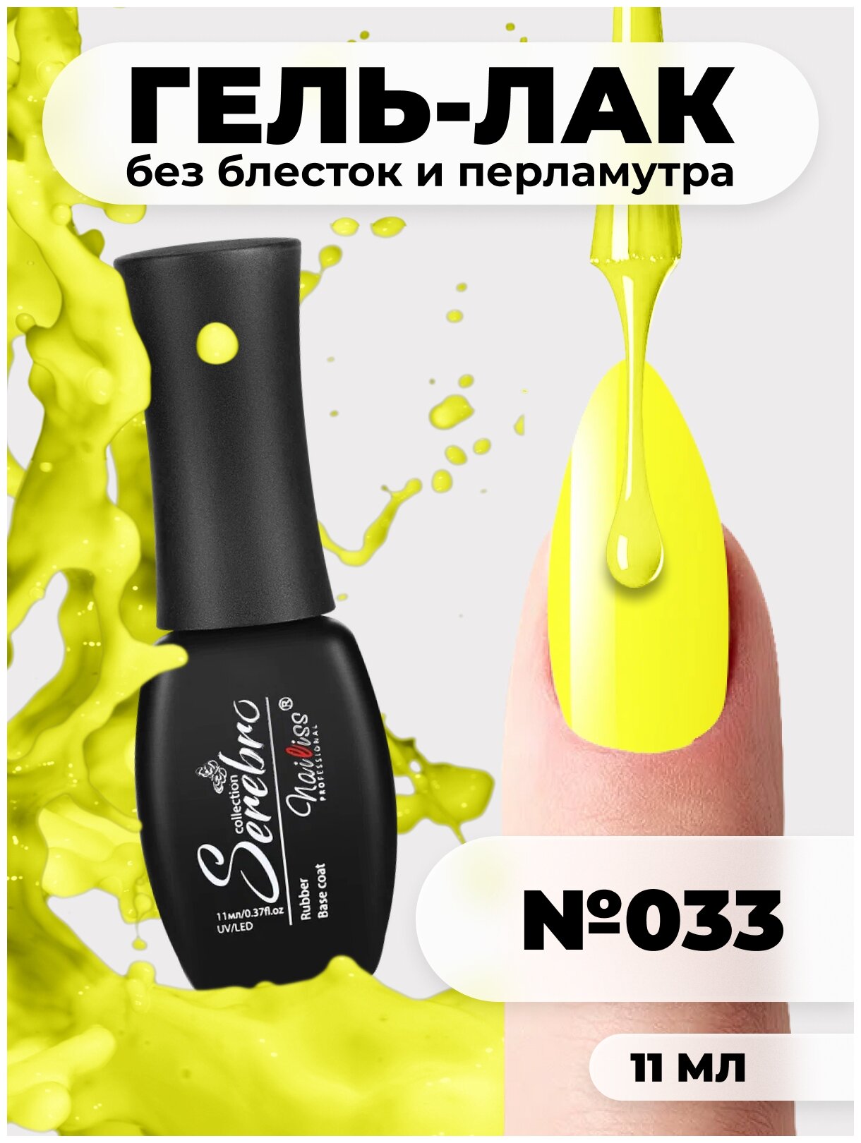 Купить Serebro гель лак для ногтей жёлтый "Лимонный фреш" для маникюра и педикюра №033, 11 мл