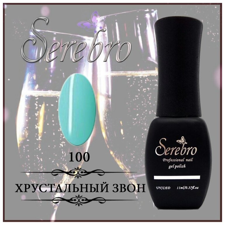 Купить Serebro гель лак для ногтей зеленый "Хрустальный звон" для маникюра и педикюра №100, 11 мл