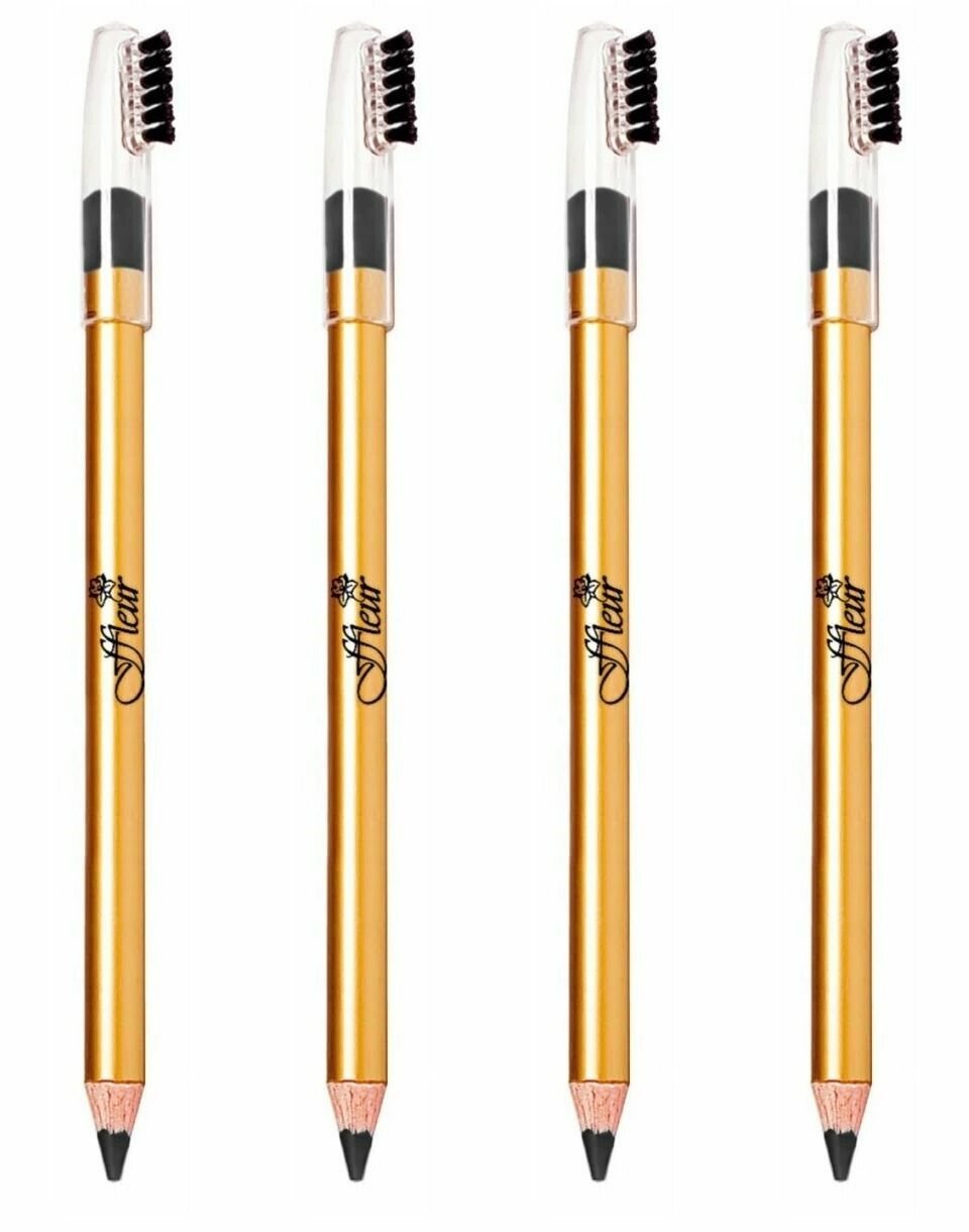 Карандаш для бровей FFleur C расческой, черный, золотистый корпус