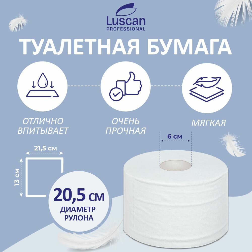 Бумага туалетная в рулонах Luscan Professional 2-слойная 6 рулонов по 215 метров (арт.1095396)