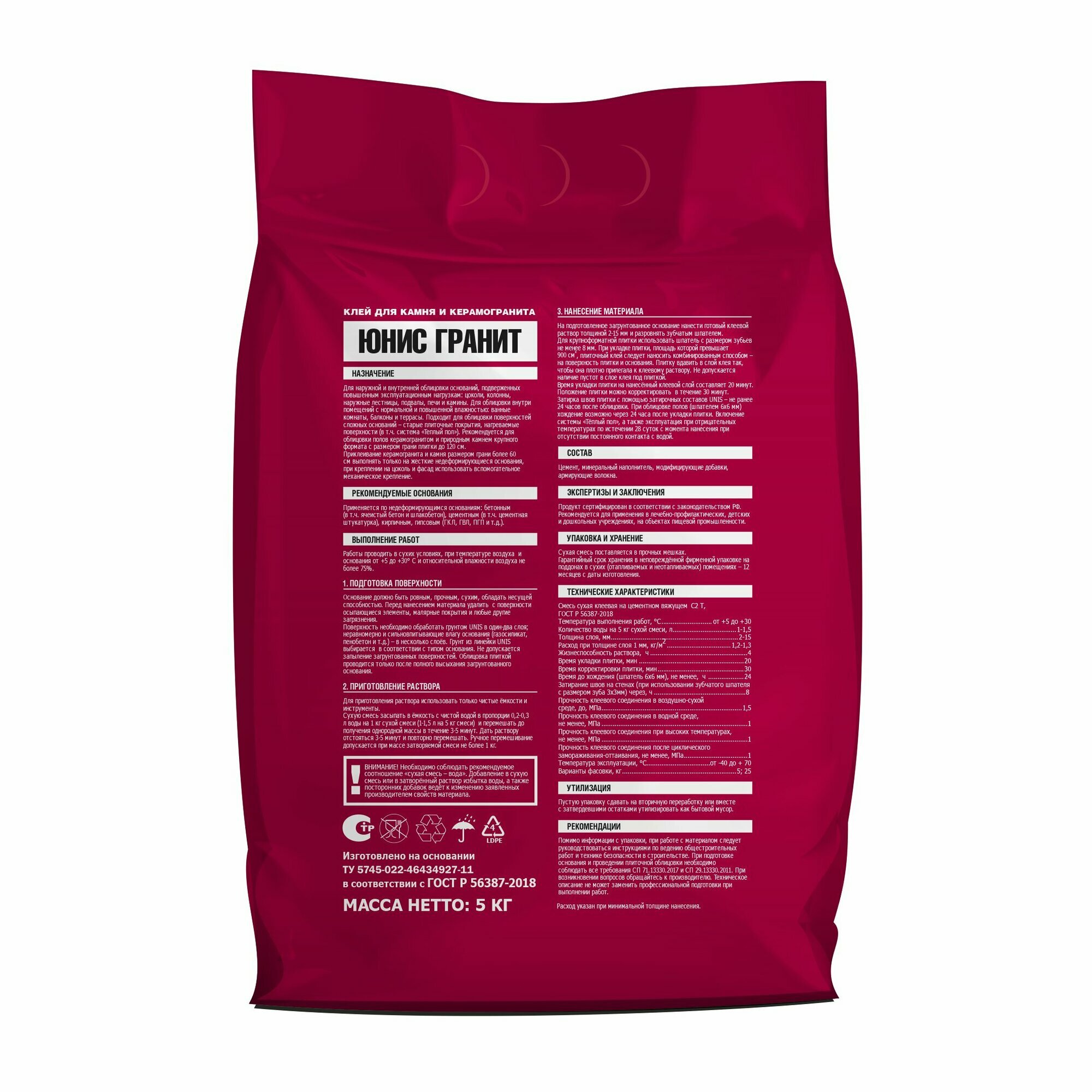 СохранитьПлиточный клей UNIS Гранит в мешке, 5кг интересное:
