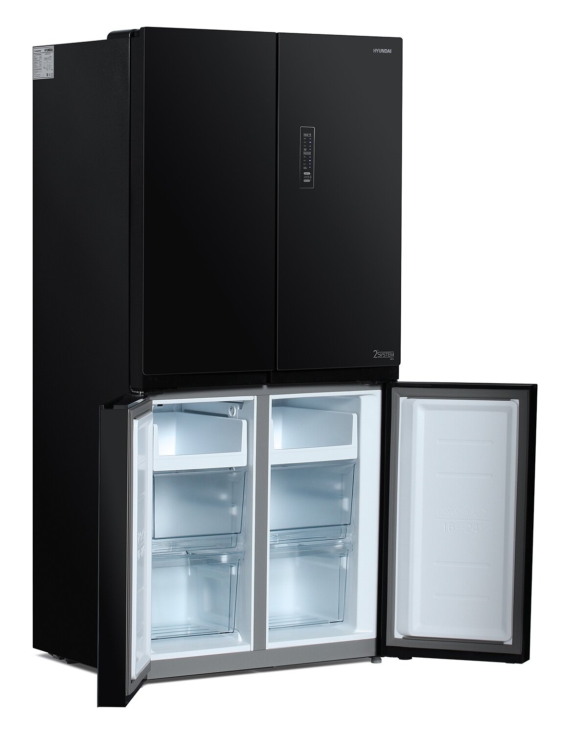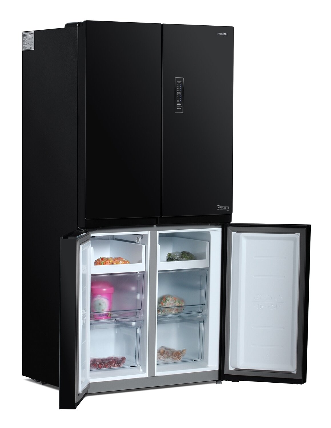 Холодильник Side by Side трехкамерный Hyundai CM5005F черное стекло интересное: