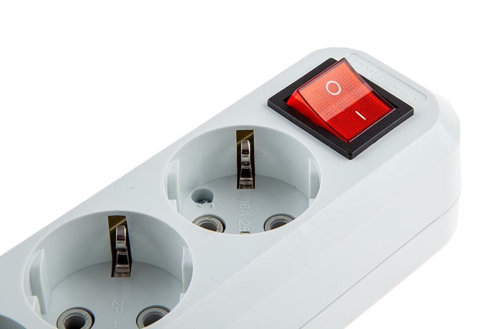 Колодка розеточная 6 гнезд 2П+З с выключателем16А 250В белая TDM