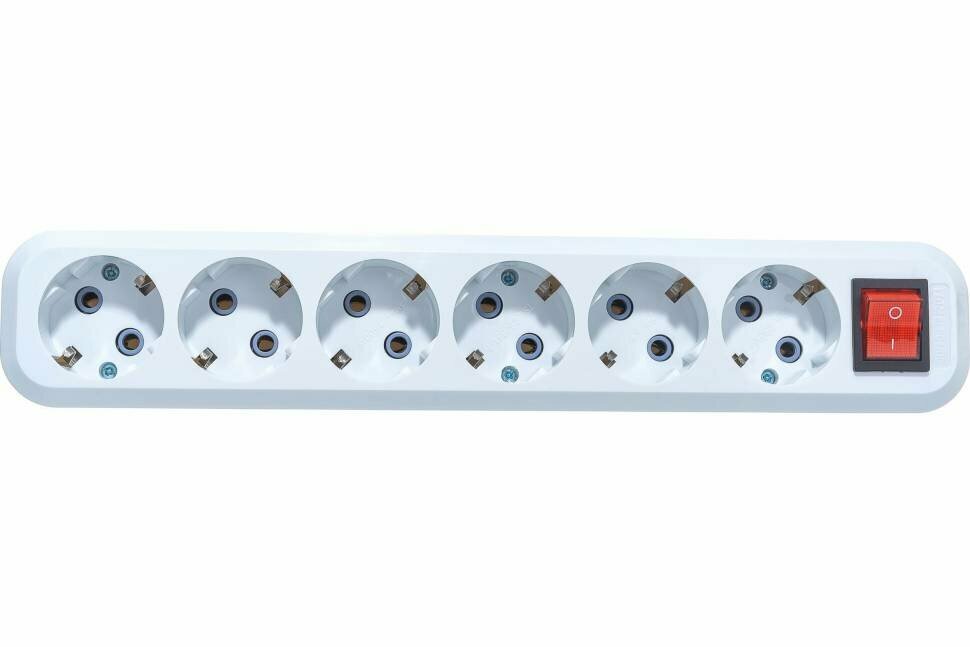 Колодка розеточная 6 гнезд 2П+З с выключателем16А 250В белая TDM {SQ1806-0040}