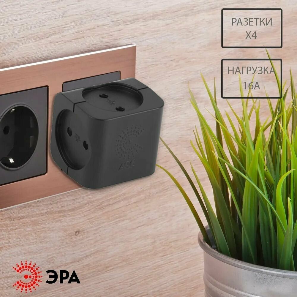 Разветвитель ЭРА SP-1e-USB 16 А черный 1 шт.