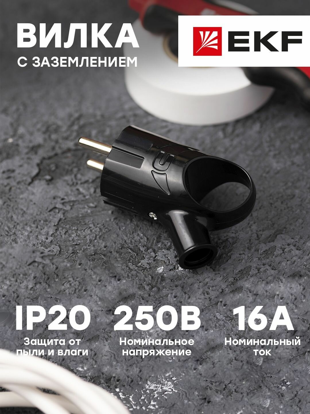 Вилка с кольцом с заземл. бел. 16А 250В AVK16-10, EKF AVK1610 (1 шт.)