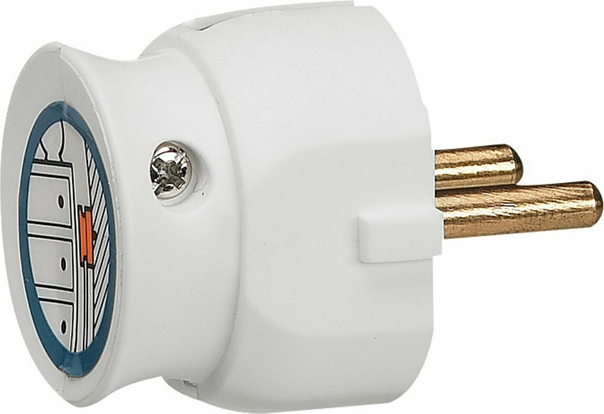 Вилка 2К пластиковая, 16А, винт сбоку, макс. сечение кабеля 2х2.5мм, прямая, белая, Legrand 050183