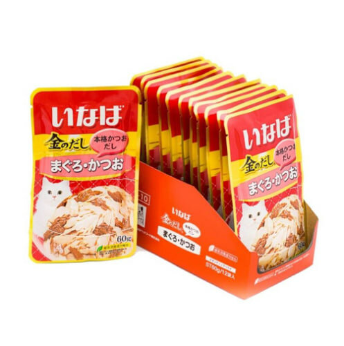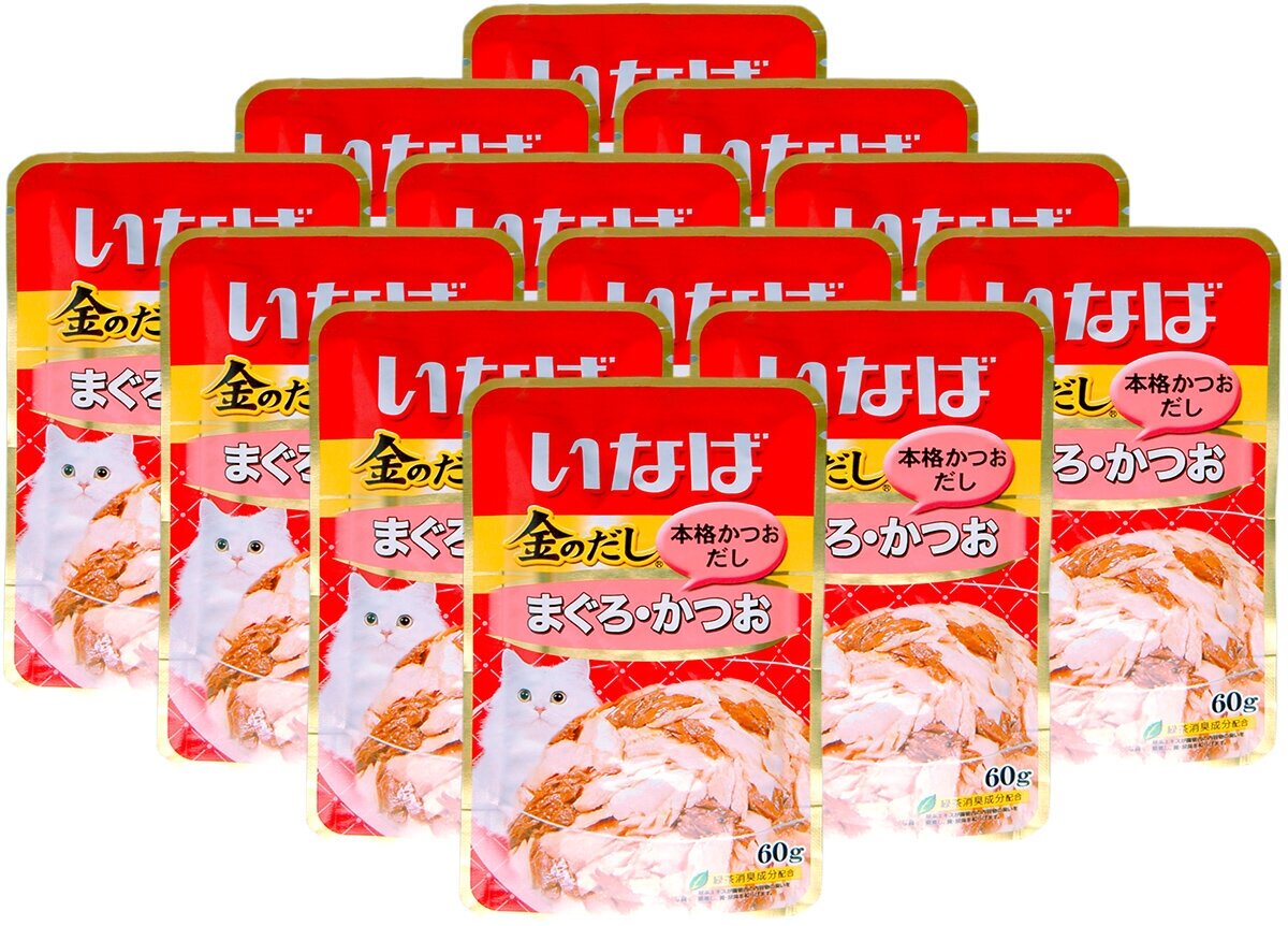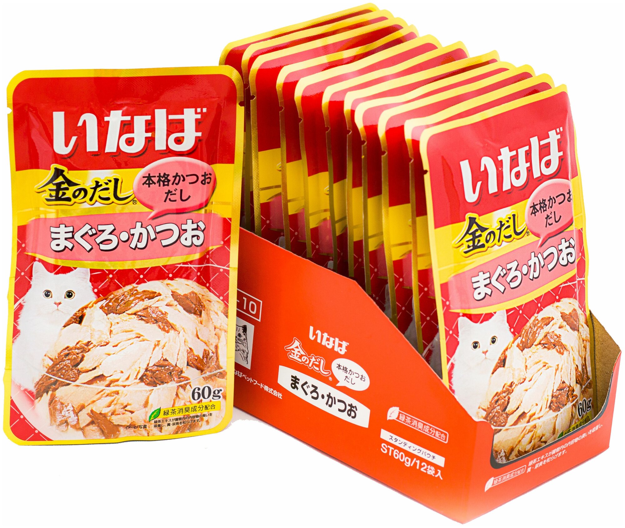 Купить Влажный корм для кошек Inaba Kinnodashi, с тихоокеанским тунцом и тунцом бонито, паучи, 12шт х 60 гр