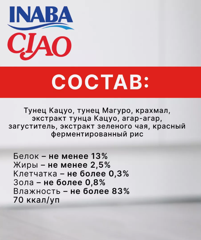 Ниже Вы можете прочитать отзывы на Влажный корм для кошек Inaba Kinnodashi, с тихоокеанским тунцом и тунцом бонито, паучи, 12шт х 60 гр, ознакомится с подробными характеристиками, посмотреть интересные обзоры и фотографии на Влажный корм для кошек Inaba Kinnodashi, с тихоокеанским тунцом и тунцом бонито, паучи, 12шт х 60 гр.