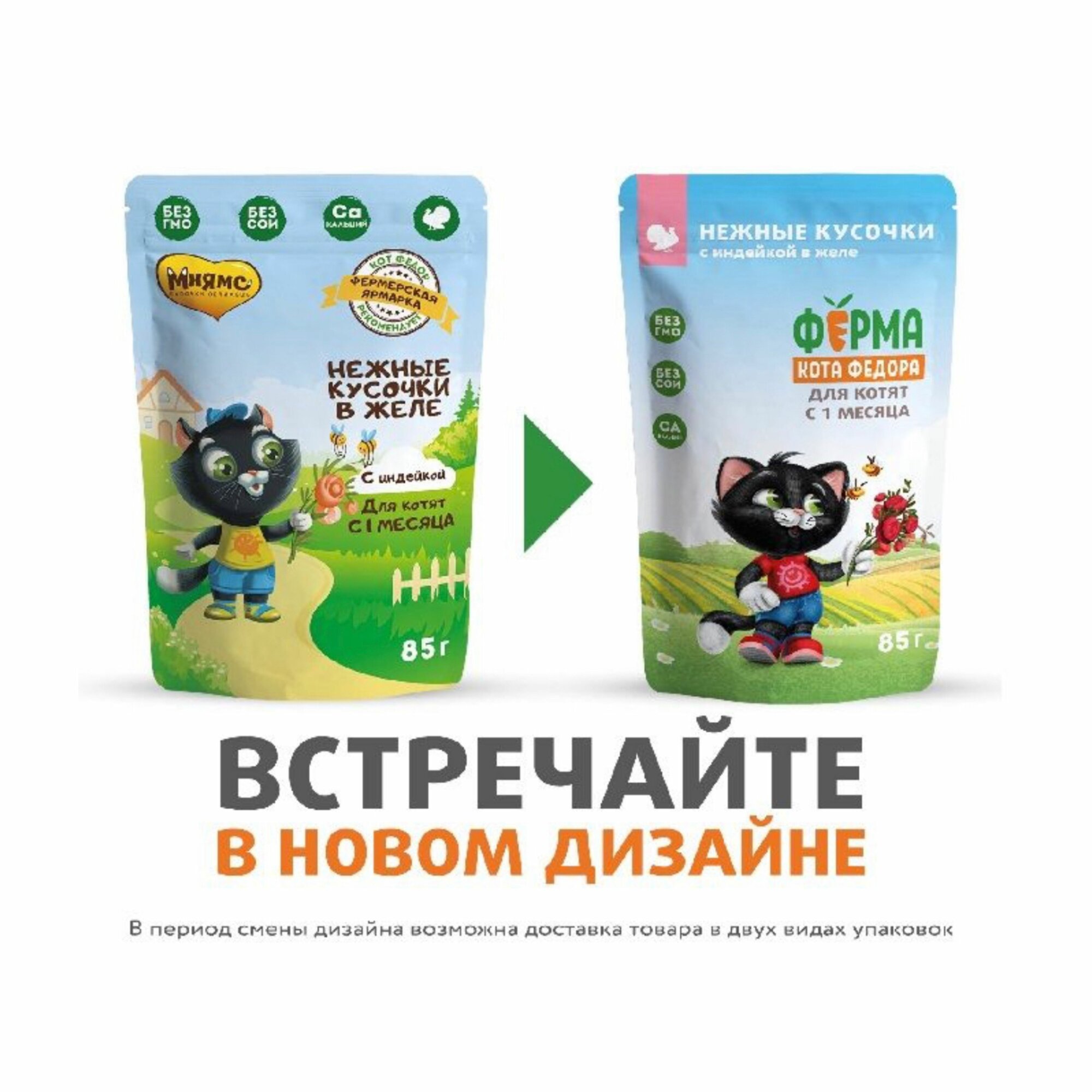 Купить Корм влажный Мнямс Ферма кота Федора для котят с Индейкой пауч 10 шт по 85 г