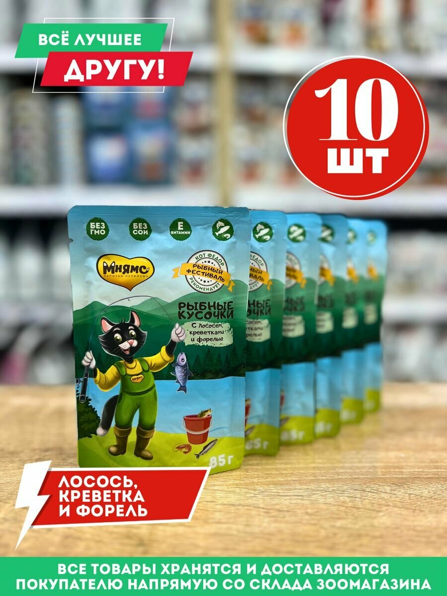 Корм влажный Мнямс для кошек Рыбный фестиваль с Лососем, креветкой и форелью пауч 10 шт по 85 г