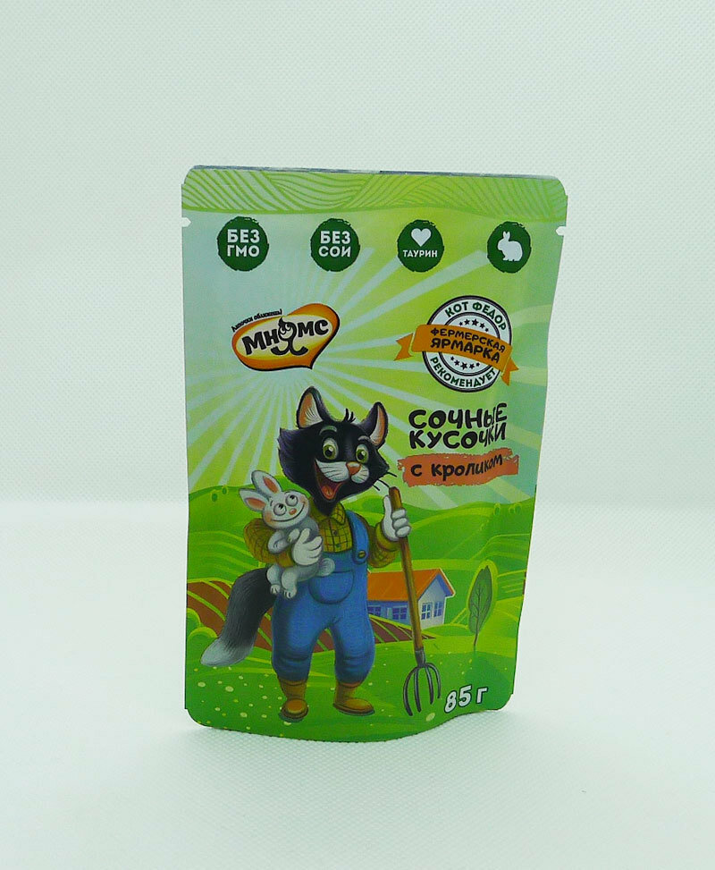 Мнямс 85гр для кошек сочные кусочки с кроликом «Фермерская ярмарка» линия Кот Федор (пауч)