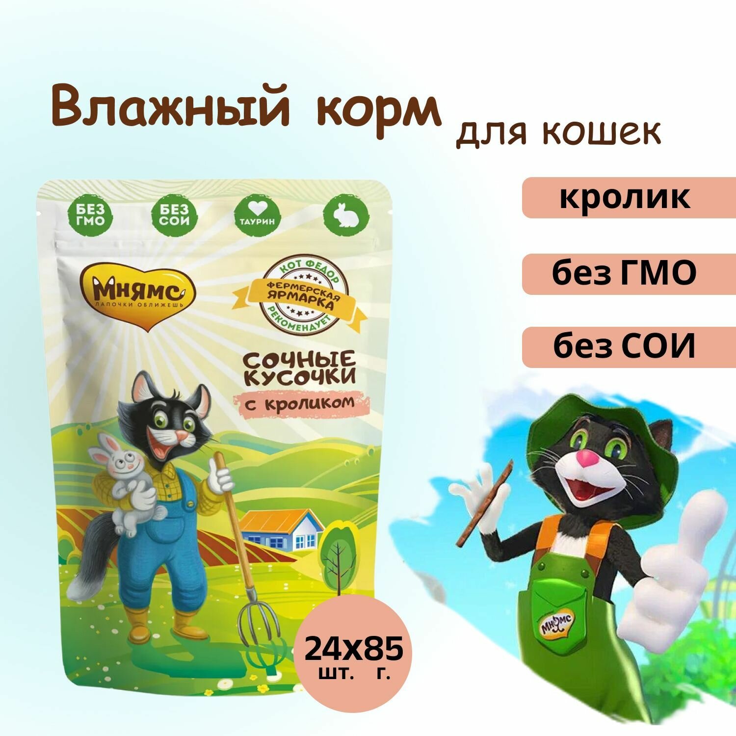 Мнямс сочные кусочки для кошек с кроликом «Фермерская ярмарка» линия Кот Федор 85г 24 шт