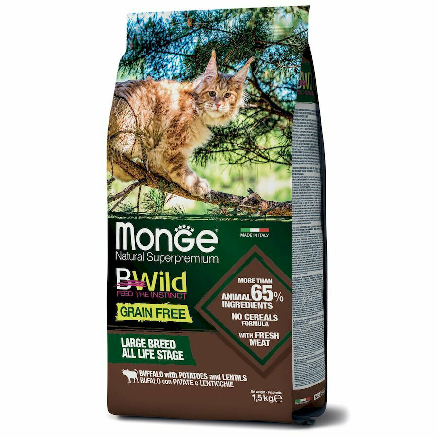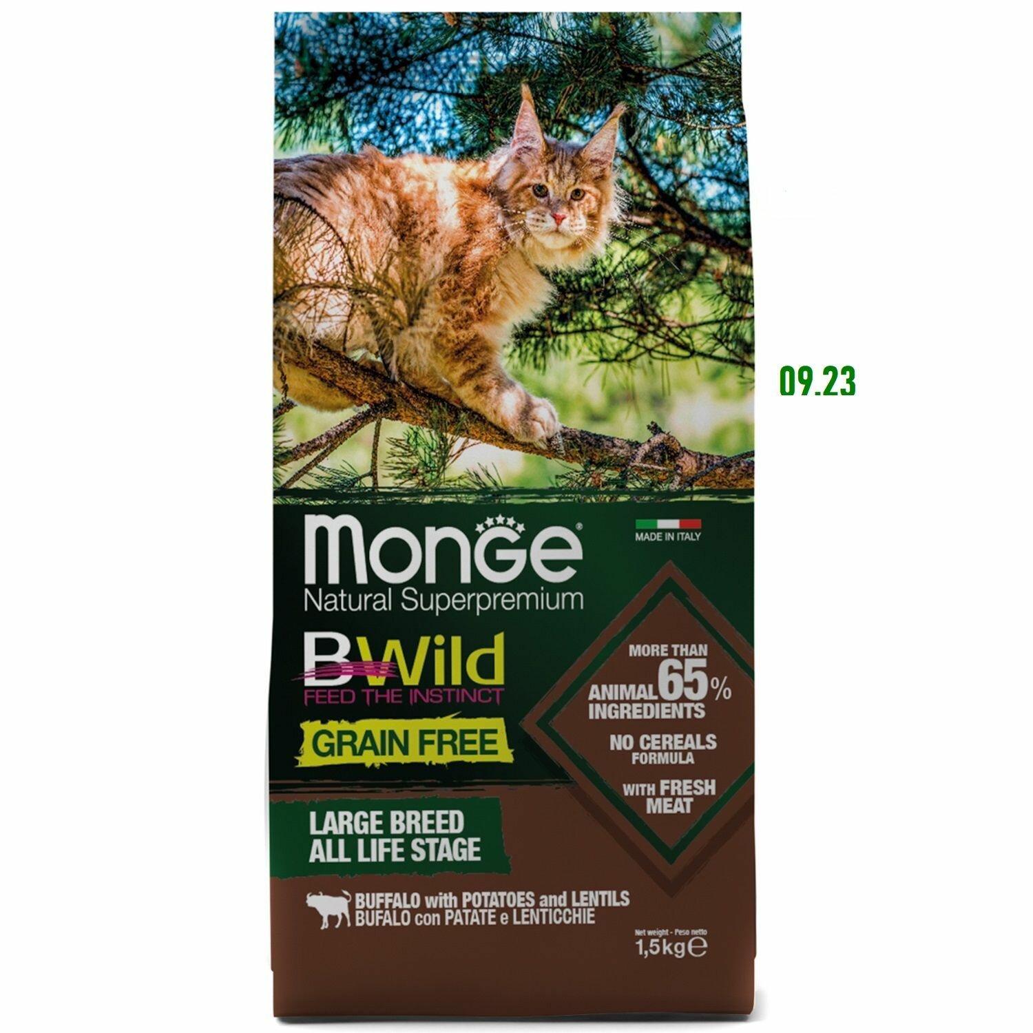 Monge Cat BWild Grain Free Сухой беззерновой корм для крупных кошек, мясо Буйвола 1,5