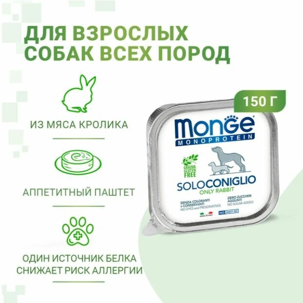 Купить Влажный корм для собак Monge Monoprotein, беззерновой, паштет с кроликом 150 г * 12шт