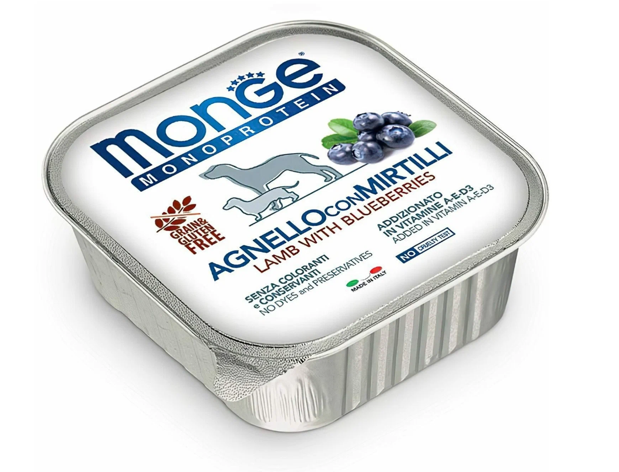 Купить Влажный корм для собак Monge Monoprotein Fruits, беззерновой, ягненок с черникой 150 г * 12шт