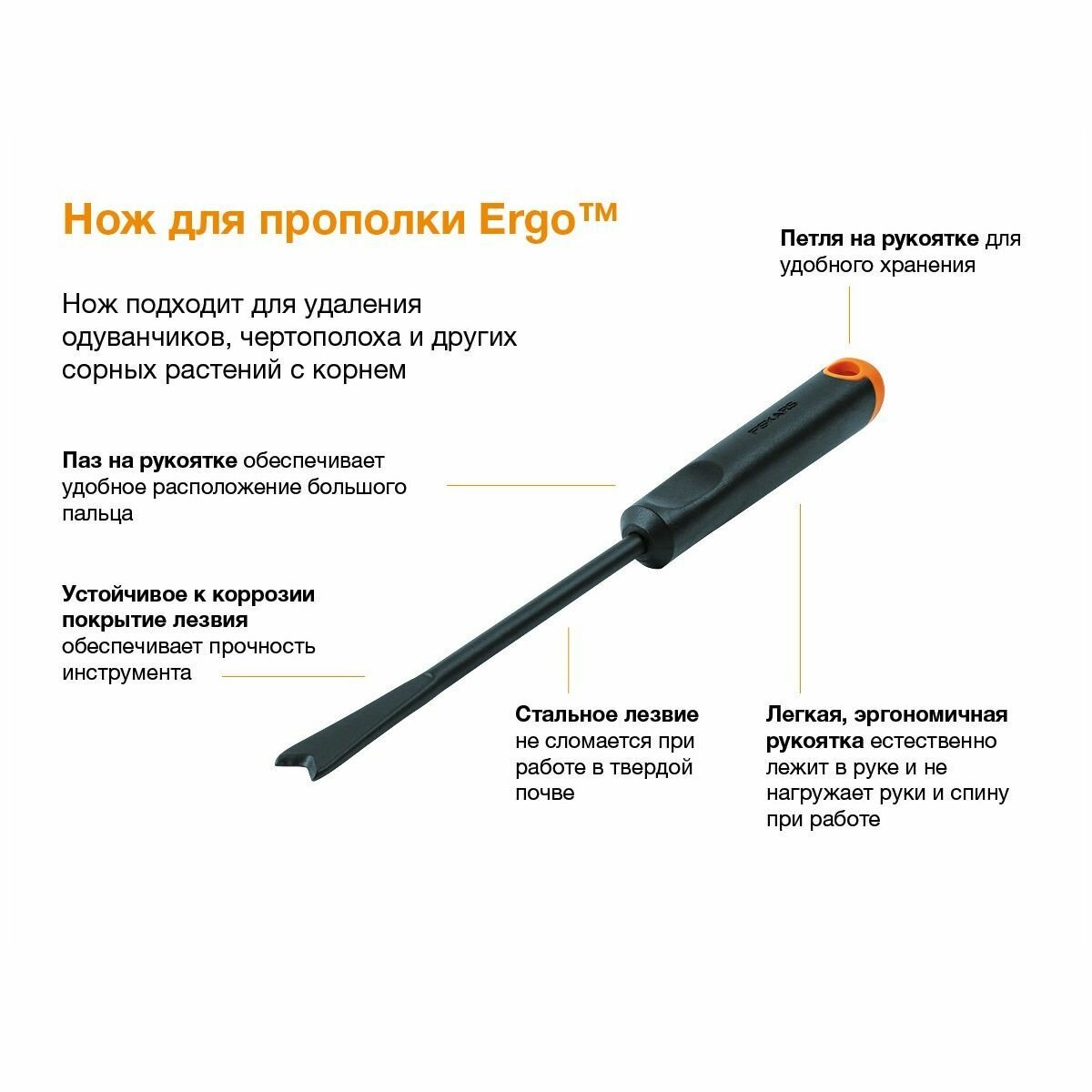 Нож для прополки Ergo FISKARS (1027031), сталь, длина 310 мм, цвет черный интересное: