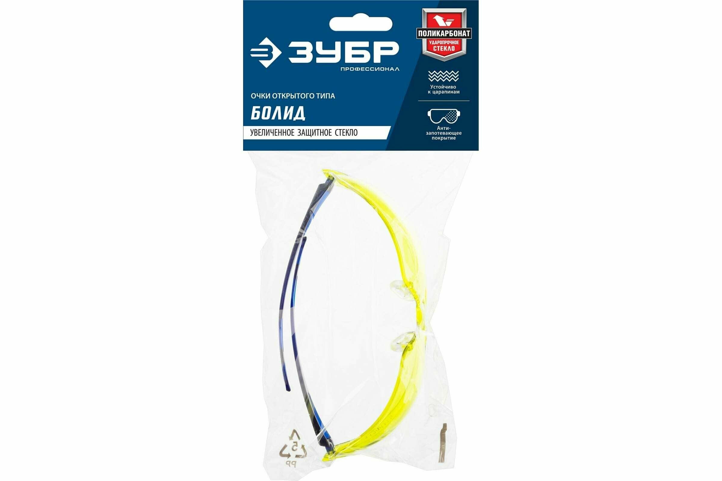 Защитные жёлтые очки ЗУБР протон линза увеличенного размера, открытого типа
