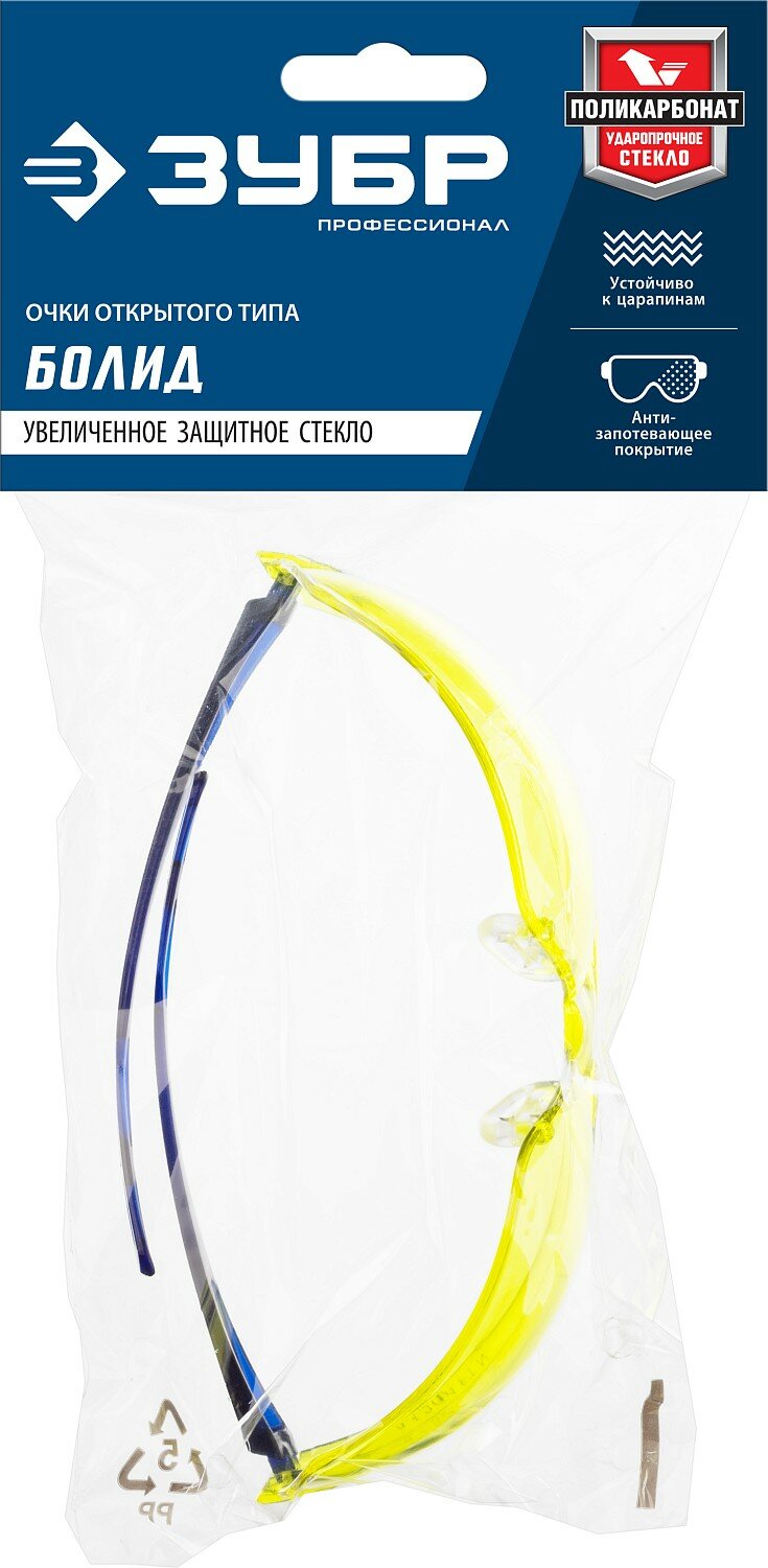 Защитные жёлтые очки ЗУБР протон линза увеличенного размера, открытого типа