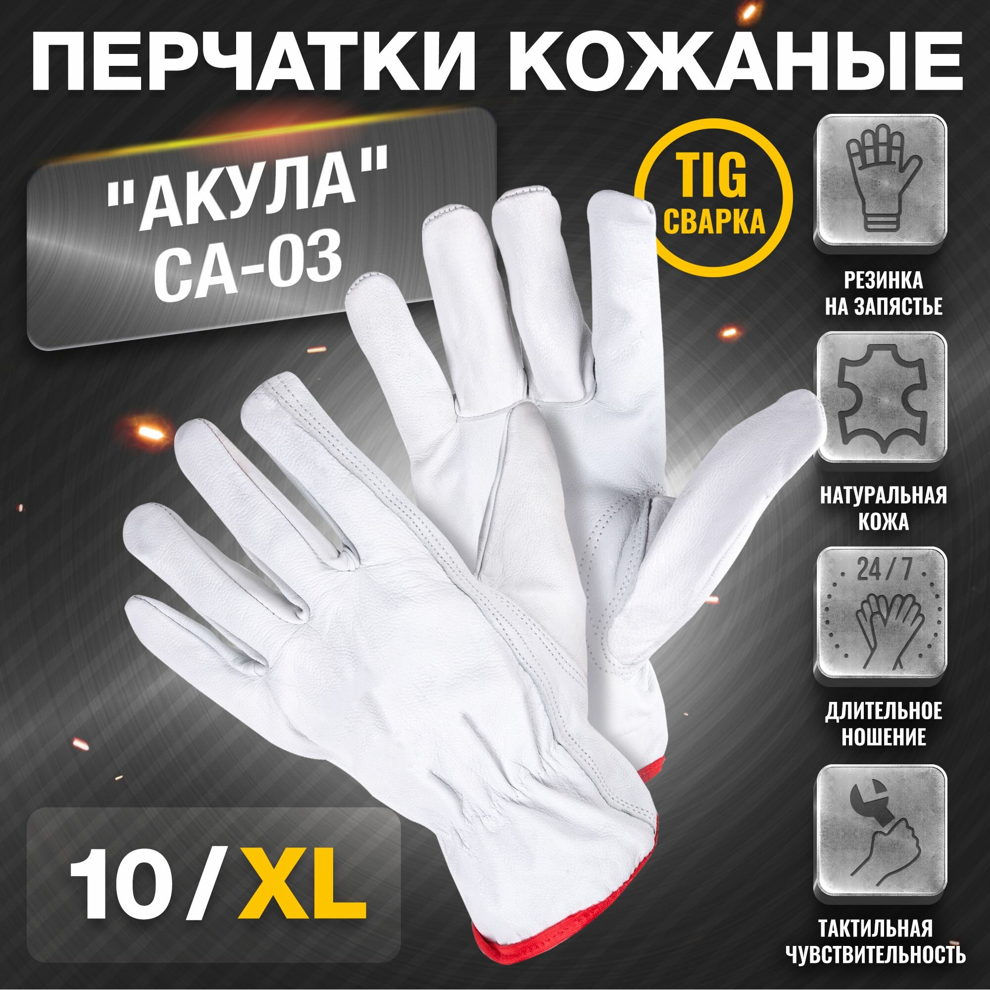 Перчатки мягкие, механические, рабочие, универсальные, кожаные / р-р 10; XL / FOXWELD "Акула СА-03"
