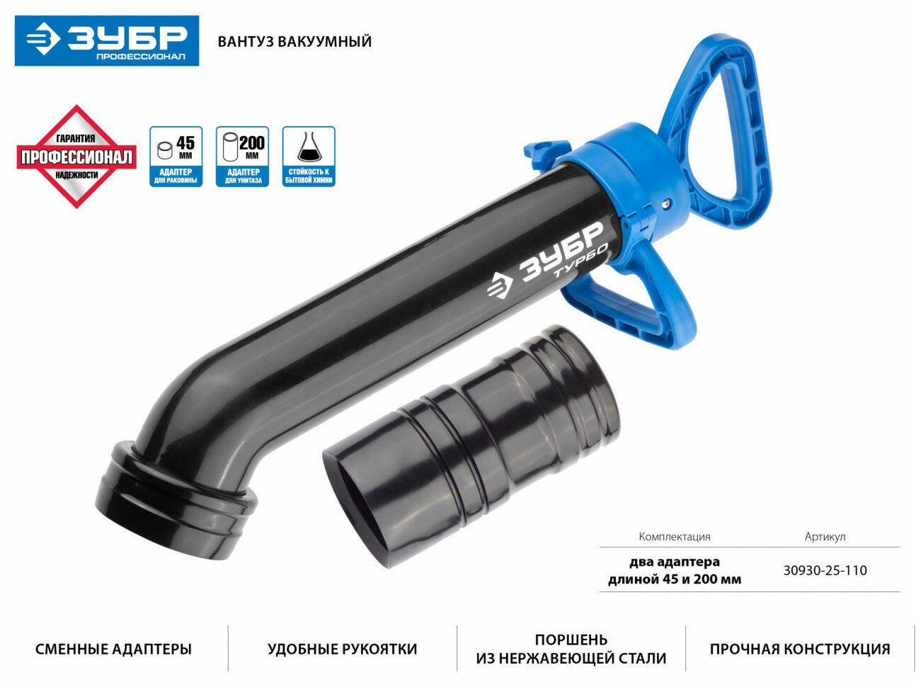 Вантуз Зубр эксперт вакуумный турбо, с двумя адаптерами 51920