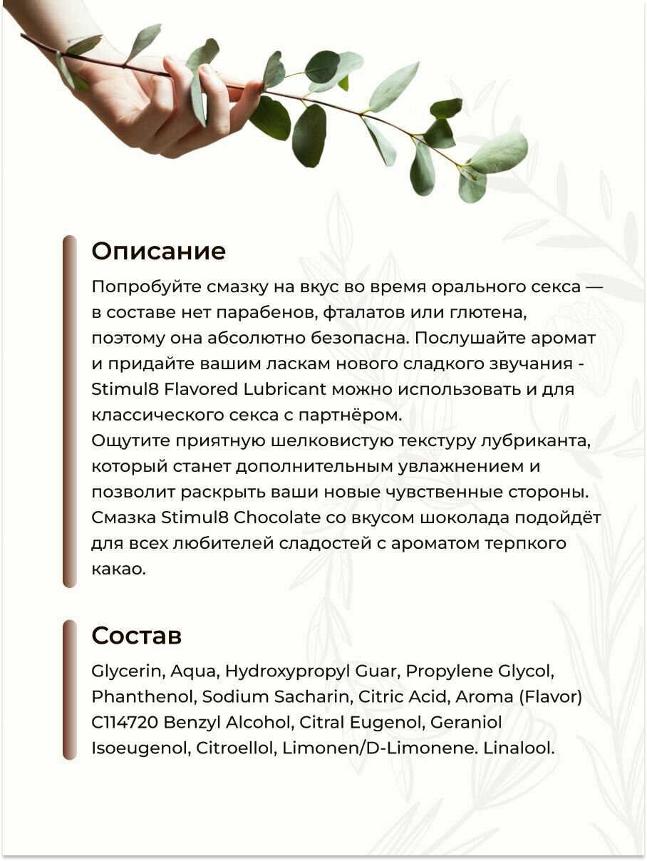 Лубрикант оральный Stimul8 S8 вкус и аромат шоколада, вес 65 г, объем 50 мл, 1шт.