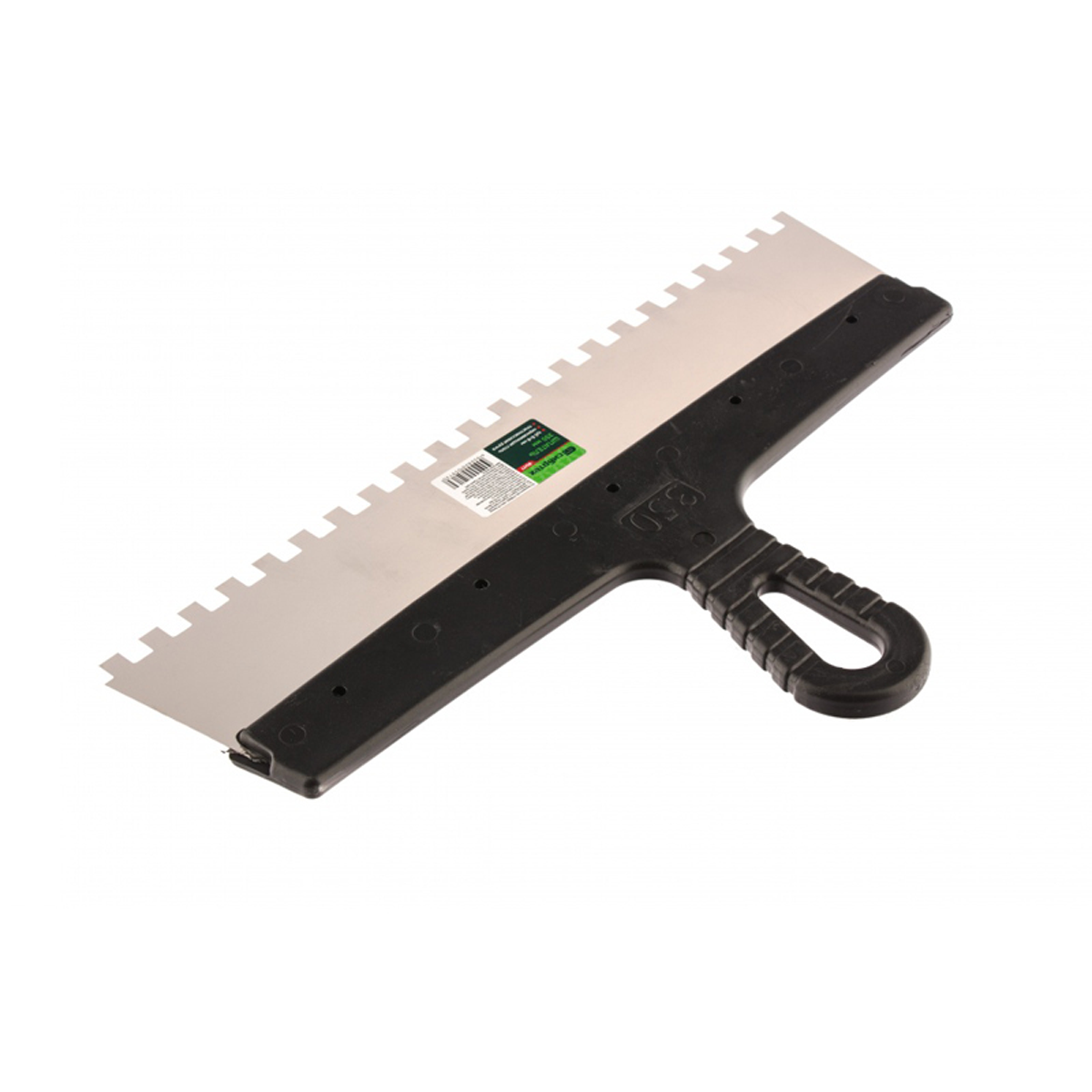 Купить Зубчатый шпатель из нержавеющей стали, 350 мм, зуб 8x8 мм, пластмассовая ручка СИБРТЕХ