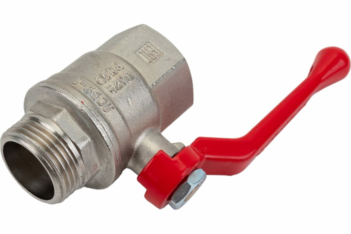 Кран шаровой латунь 11Б27фт1М Ду 15 Ру40 ВР/НР полнопроходной рычаг красный VALFEX VF.215.LR1.012