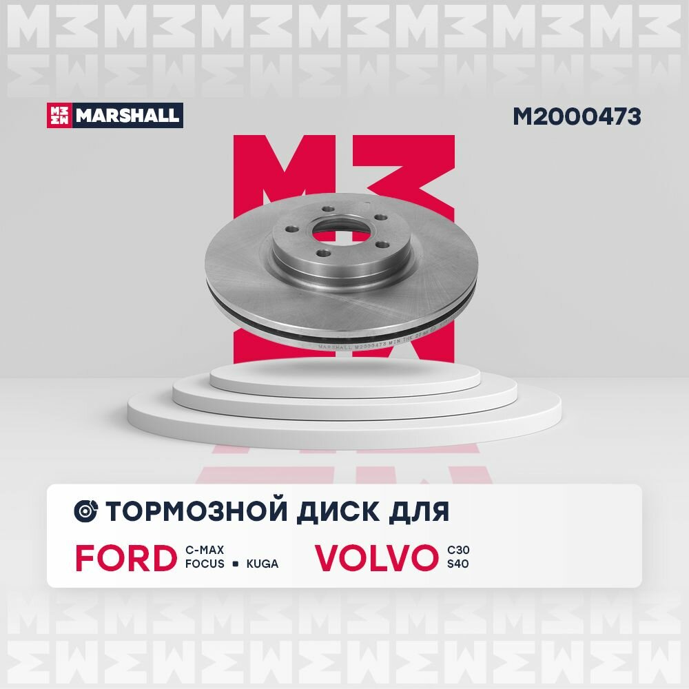 Тормозной диск Ford Focus II-III 04-, Ford Kuga I, II 08-, Volvo C30 (533) 06-, Volvo S40 II (544) 04- передн. (M2000473) (упаковка 2 шт.), MARSHALL M2000473