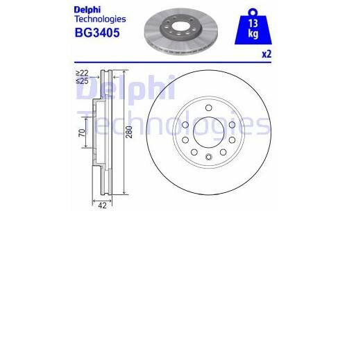 Delphi DELPHI Диск тормозной DELPHI BG3405 комплект 2 шт