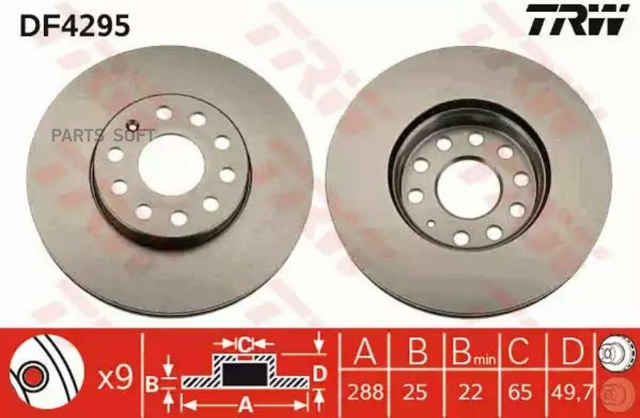 Торм.Диск Пер.Вент.[288x25] 9 Отв. TRW арт. DF4295