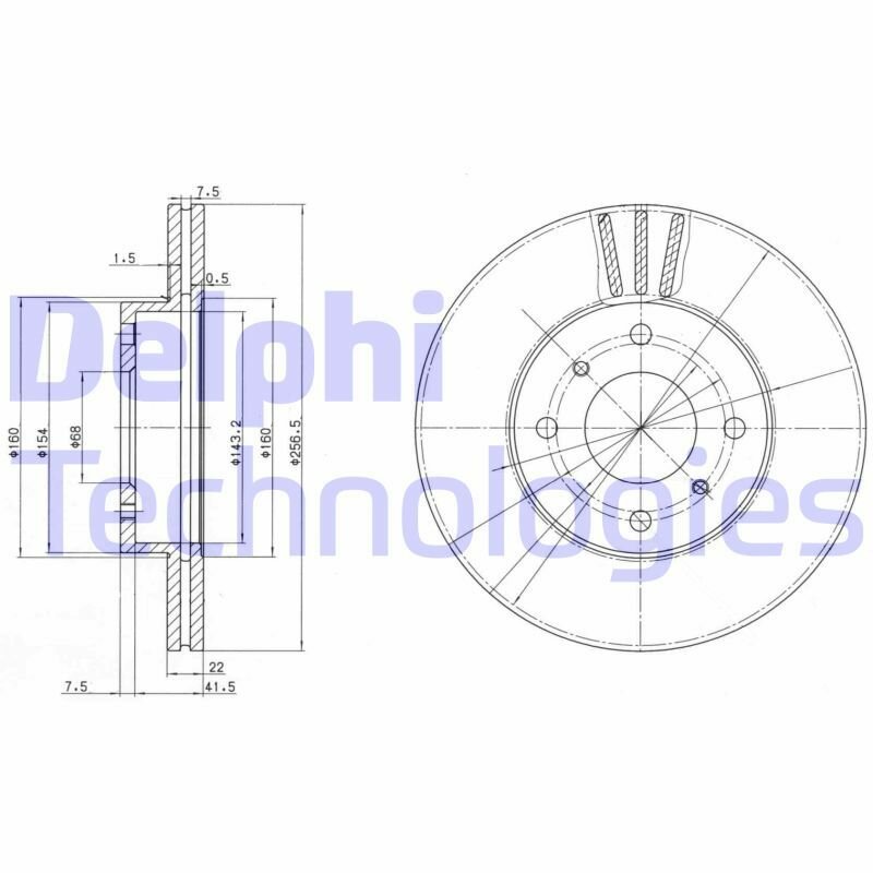 DELPHI BG2567 Диск торм. пер. вент.[257x22] 4 отв.