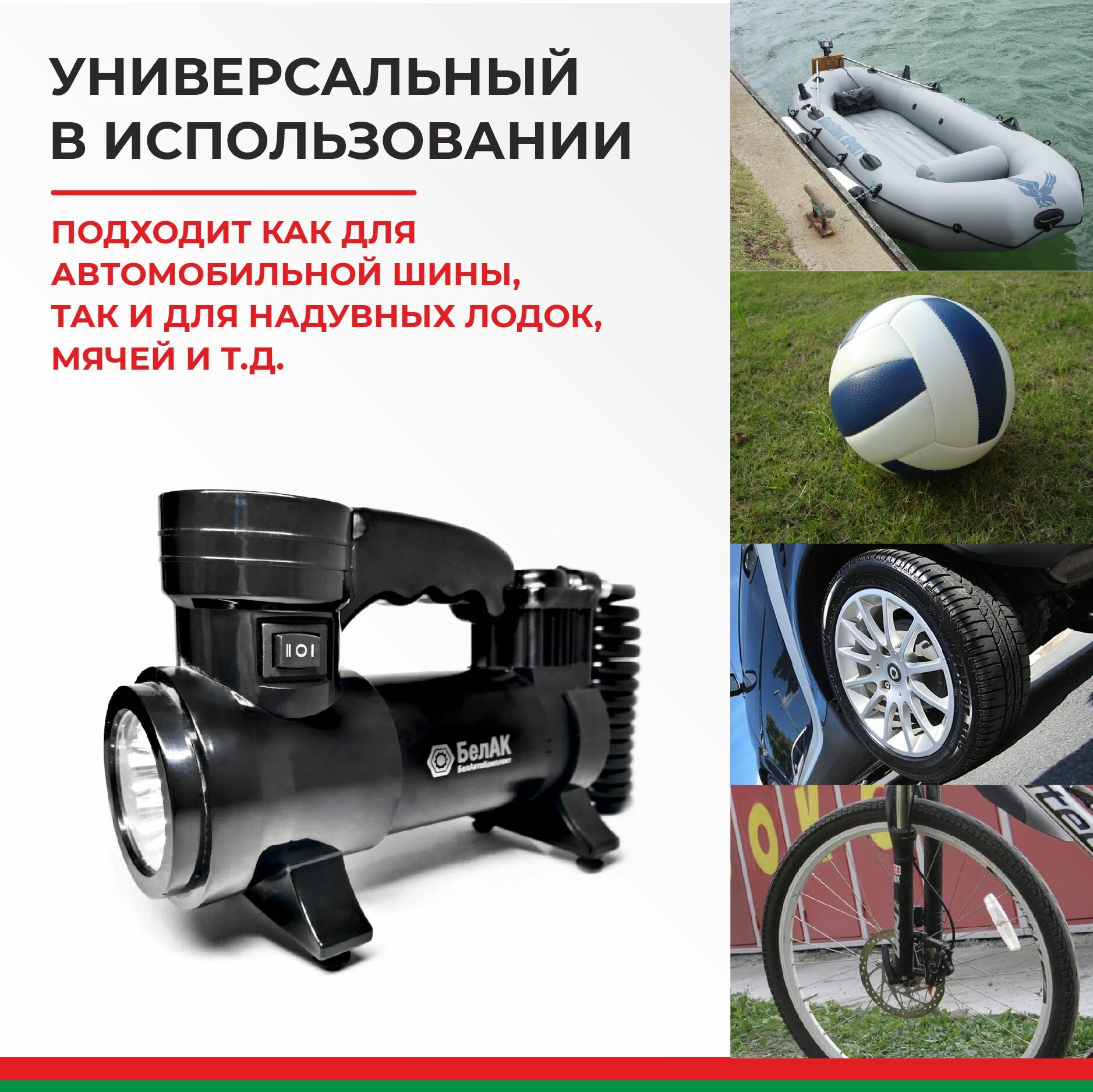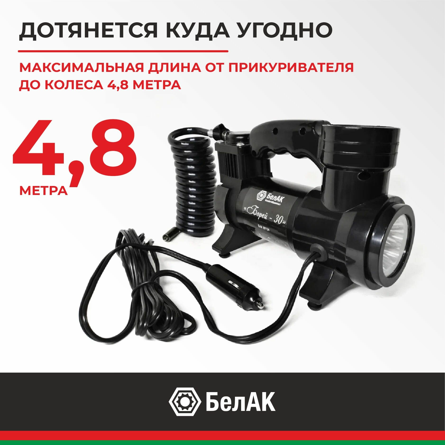 Компрессор Для Накачки Шин "Борей-30" С Фонарем 12V 42 Л/Мин. Universal БелАК арт. БАК.99154