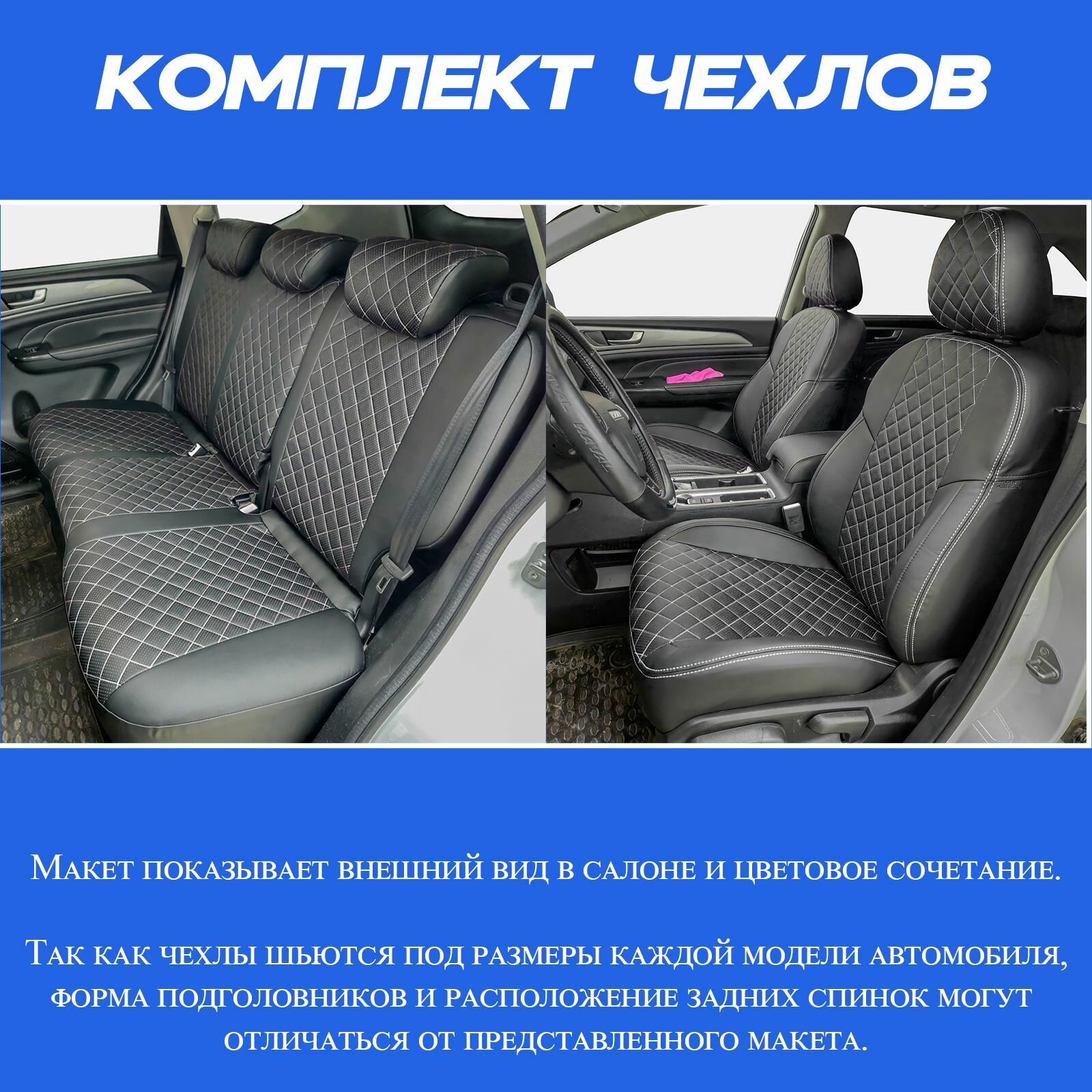 Комплект каркасных чехлов 5D CarFashion Consul Plus, чёрные, отстрочка серая