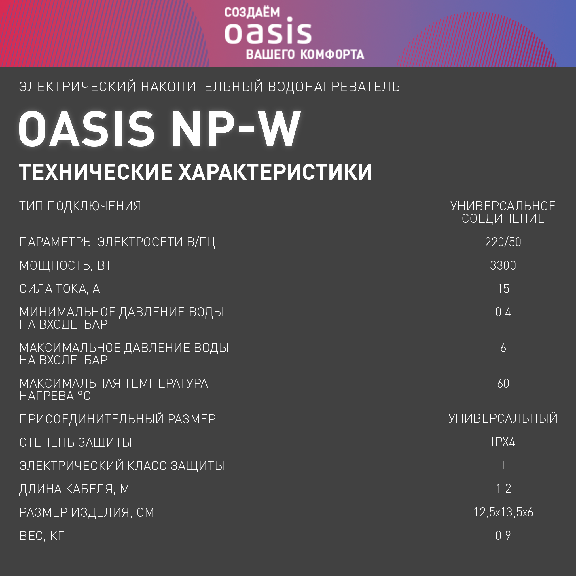 Водонагреватель OASIS NP-W, проточный, 3.3кВт, белый
