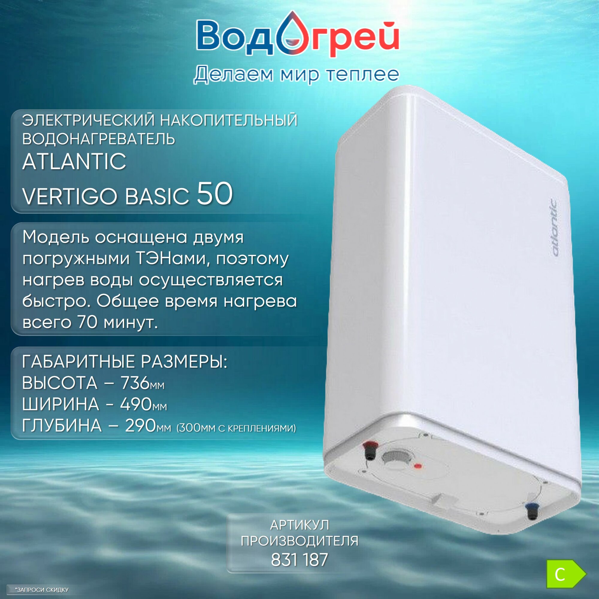 Водонагреватель ATLANTIC VERTIGO BASIC 50 (831187) электрический