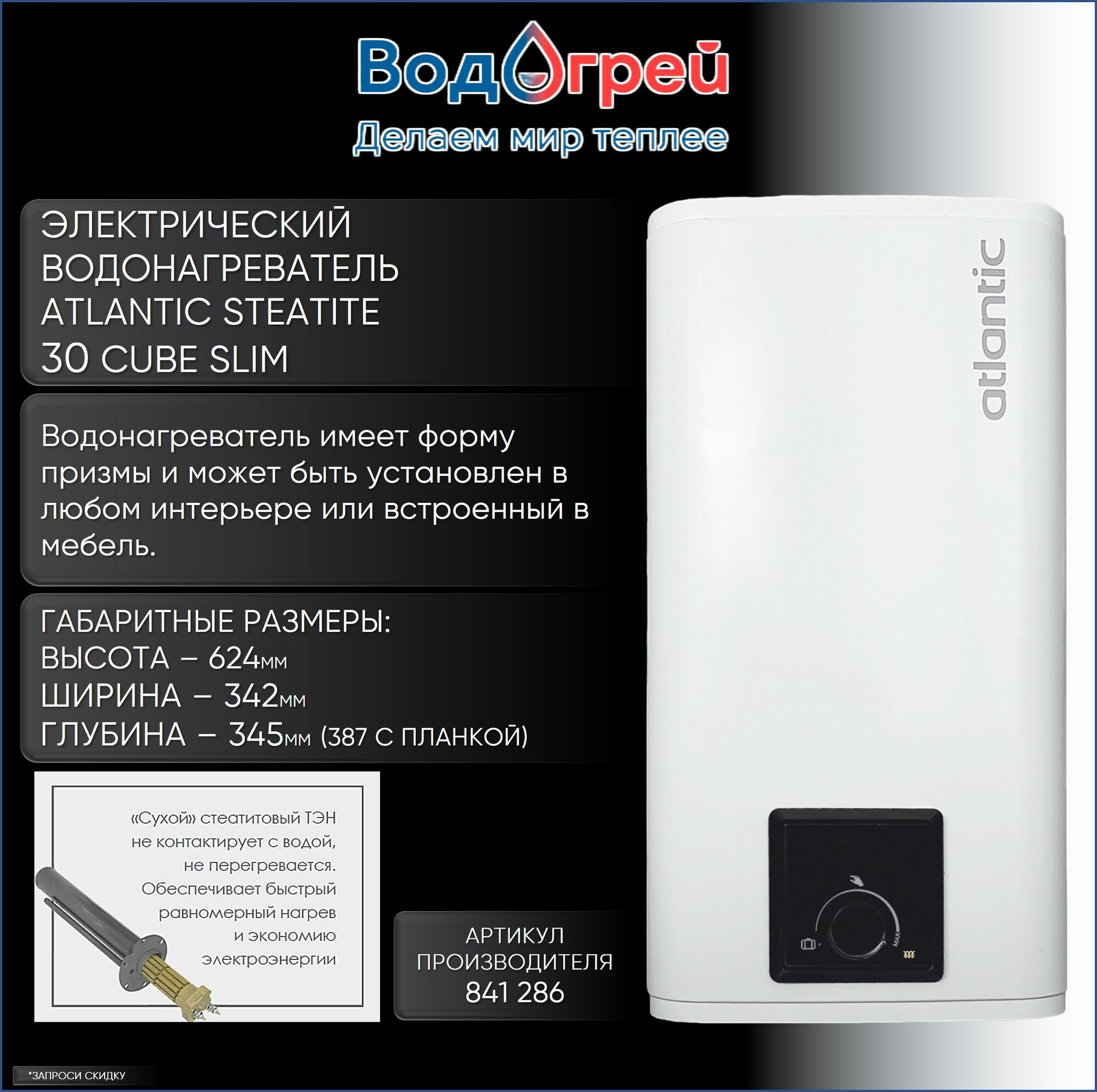 СохранитьВодонагреватель накопительный электрический / Atlantic Steatite Cube Slim VM 30 S3, белый интересное: